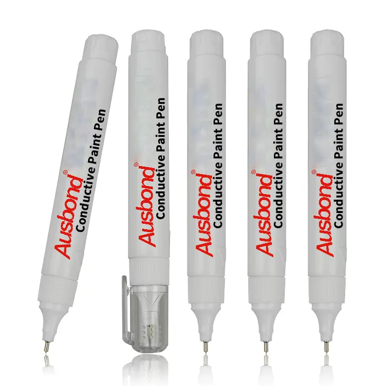 Ausbond 導電銀漆筆采用含銅、銀等復合微粒作導電顆粒,具有良好的導電性能的一種水性筆。可作為導電、屏蔽、抗靜電、光電塗層使用。特別適合作為DIY電子畫筆使用及工程設計電路作畫等。具有導電性強、無氣味、水性環保等特點。