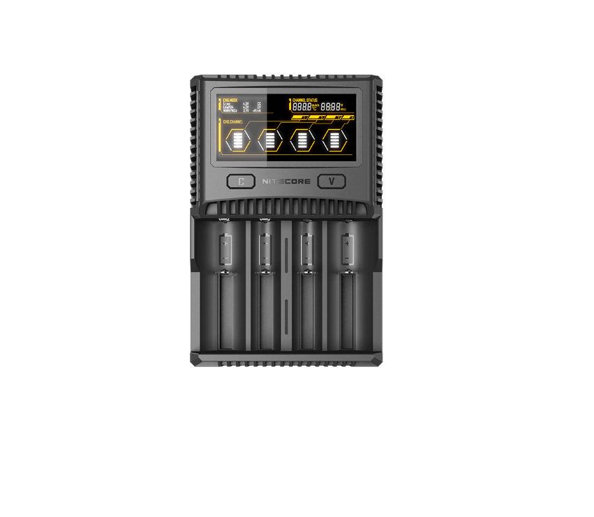 Say goodbye to long charging times. The Nitecore SC4 is capable of up to a blazing fast 3A speed in one slot and a total charging output of 6A. This four-slot universal charger handles most IMR/Li-ion and NiMH battery types including 18650, 16340, 14500, 26650 and more. Equipped with a USB output as well, the SC4 can be used to charge external devices such as laptops and cell phones. With intelligent charging features, using the SC4 is as easy as inserting your batteries into the charger - the SC4 does the rest. Both the charging current and voltage can also be adjusted for specialized batteries. A brightly lit LCD screen displays charging status and battery health while built-in overcharging, overheating and short circuit protections keep you and your batteries safe. In the event of a problem, the screen will read "EE EE" to alert users and cease charging.