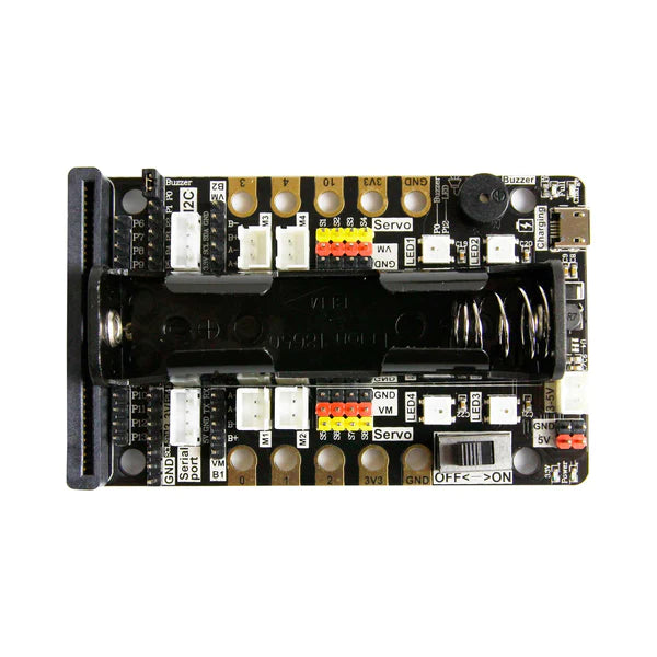 - 驅動直流電機、步進電機、伺服系統、板載蜂鳴器和可編程 RGB 燈的功率能力。
